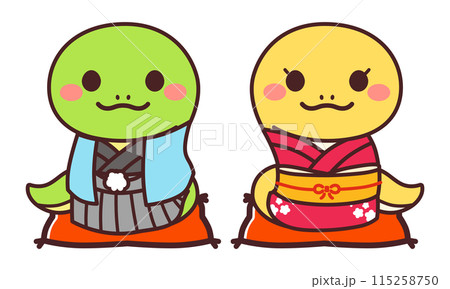 着物を着た巳のかわいいキャラクター 男女 イラスト素材