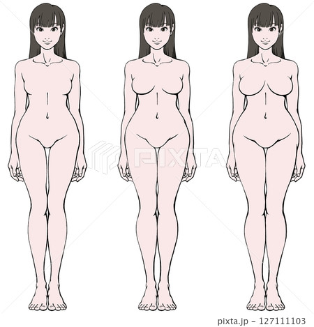 若い女性の全身正面立ちポーズ_裸_グラマー