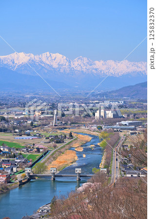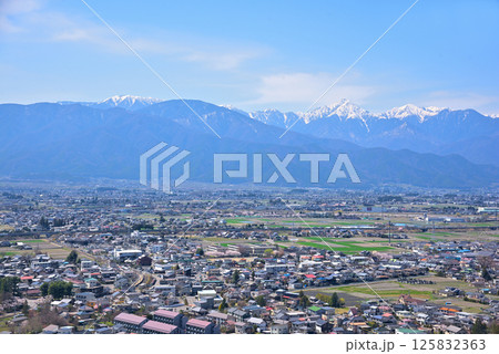 《長野県》松本市城山公園からの展望 残雪の北アルプスと松本盆地