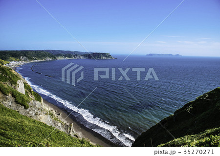 厚岸町 愛冠岬から眺める大黒島、小島、アイニンカップ岬