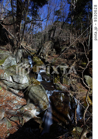 栃木県那須塩原市塩原字東山国有林 塩原十名瀑のひとつ竜化の滝が流れ込む箒川の支流寒沢の流れ