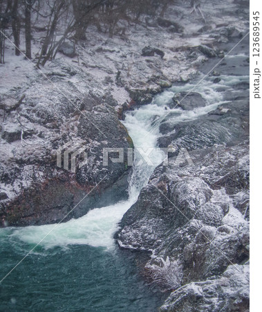 栃木県那須塩原市 塩原温泉を流れる箒川と布滝