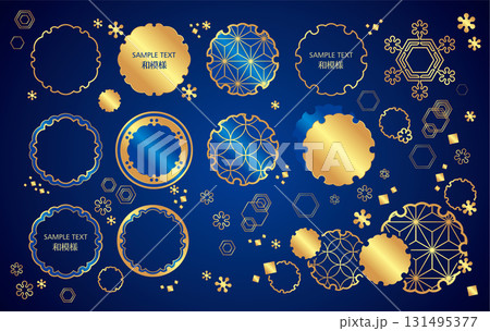 和柄 雪輪文フレームセット(金箔風)/七宝・麻の葉/ネイビー