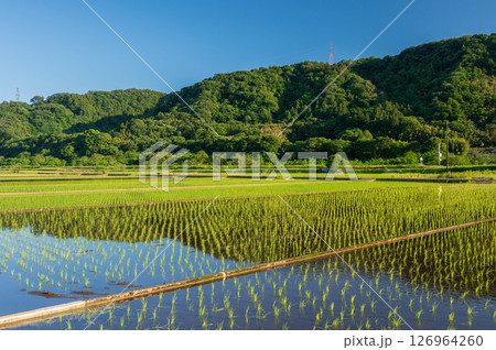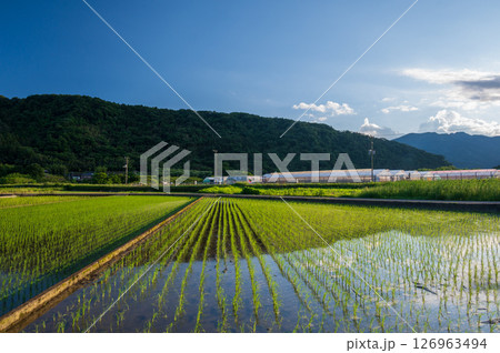箕輪耕地の田園風景 初夏の田んぼ景色 水道坂