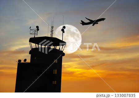 Airport control tower guiding air traffic operations