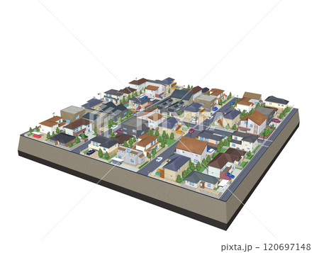 家 住宅 街 CG ジオラマ 地下鉄 BG 街並み 斜め 背景
