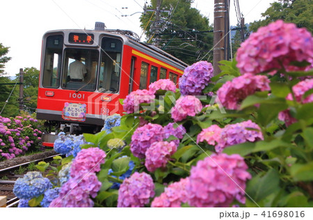 箱根登山鉄道とあじさいの風景