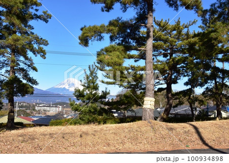 三島市 錦田一里塚と初音ヶ原松並木と冠雪富士山
