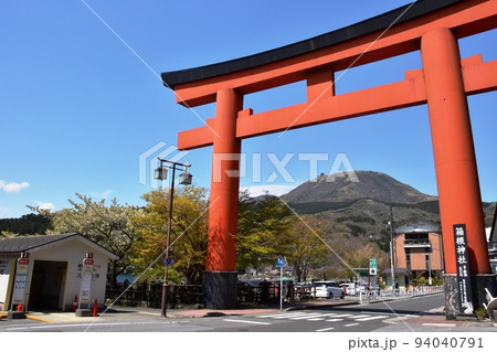 箱根町 箱根神社第一鳥居と駒ケ岳と新緑