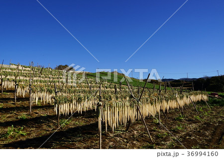 (静岡県)箱根西麓のダイコン干し 富士山