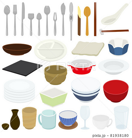 スプーンフォークナイフお皿フライパン鍋のイラスト