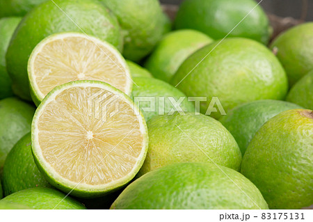 Lime slice citrus fruits background. Fresh juicy limes. Healthy food.