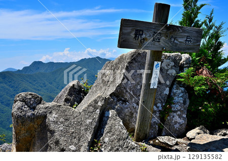 御坂山地 岩稜の釈迦ヶ岳山頂より望む十二ヶ岳、鬼ヶ岳、節頭ヶ岳、王岳を望む
