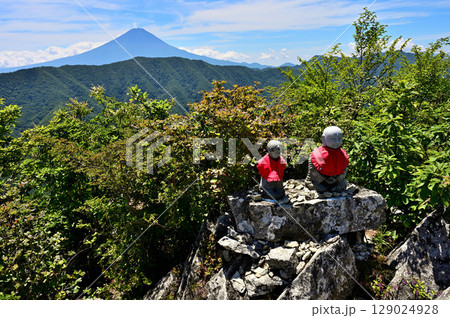 御坂山地の釈迦ヶ岳山頂より 夏富士と御坂山地の展望