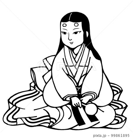 着物を纏った築山殿【3頭身・白黒・ビットマップ】