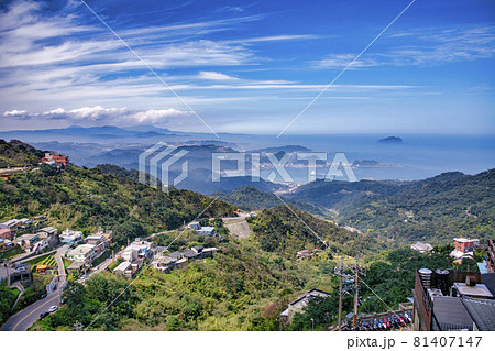 台湾 九份(きゅうふん) 九份老街の展望台から基隆市方面の眺望