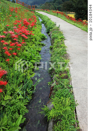 小川の流れと彼岸花
