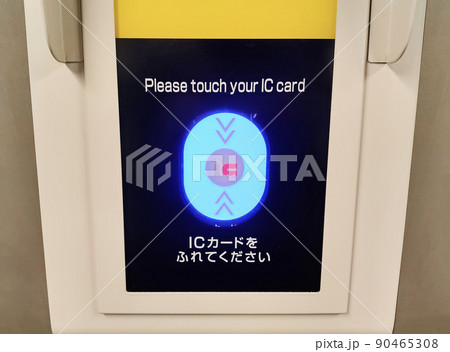 水色のICカードをカードリーダーにかざして支払うイラスト