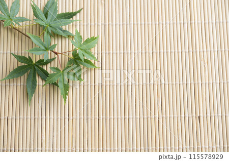 青紅葉とすだれの白バック背景素材(夏イメージ)
