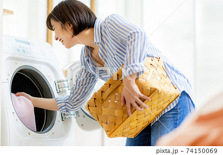 洗濯をする若い女性