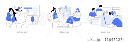 Evening entertainment isolated cartoon vector illustrations set.
