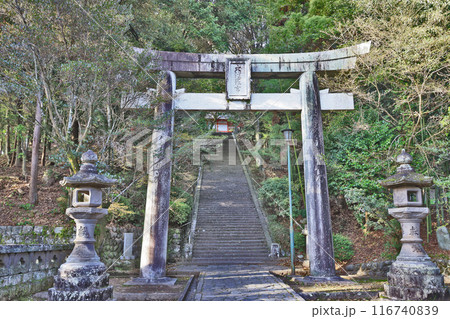 大分県日田市の総鎮守大原八幡宮鳥居と参道の石段