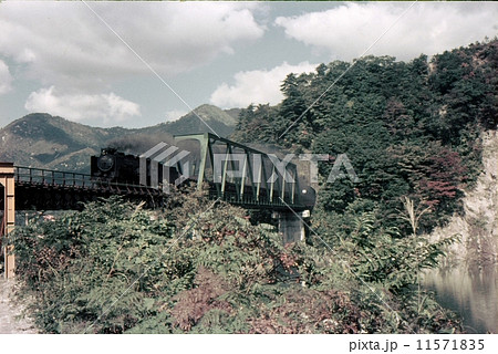 鉄橋を渡る米坂線蒸気機関車9600 昭和44年