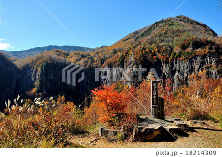 (長野県)展望台から望む、米子大瀑布 紅葉
