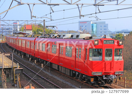 名古屋市方面にむかう赤い電車(名鉄日進駅へ 名鉄豊田線 愛知県 日進市)