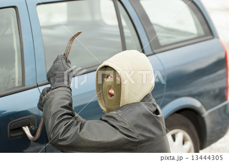 車のドアの近くにバールと強盗
