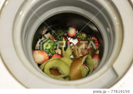 生ごみ粉砕機に入ってるキウイの皮とイチゴのヘタ