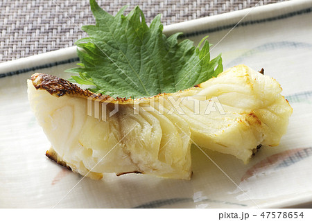 焼き魚、こんがり焼けた銀だらの粕漬け焼きアップ