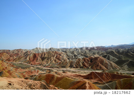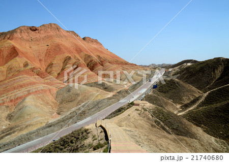 張掖国家地質公園には七彩山と呼ばれるカラフルな地層が続く壮大な景観があります。