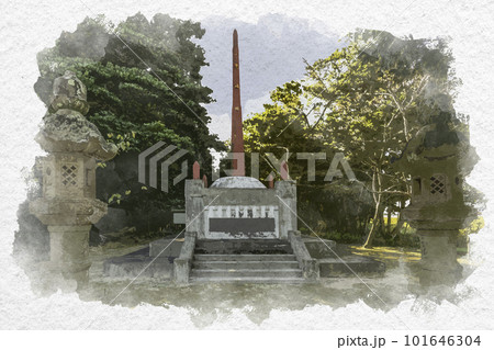 水彩画風 粟嶋神社 忠魂碑 鳥取県米子市