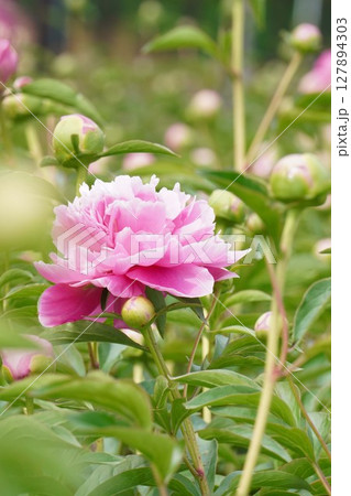 庭に咲くピンクのシャクヤク 春の粧
