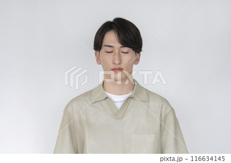 目を閉じた20代前半の男性