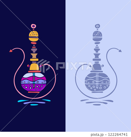 Colorful smoky hookah, hand-drawn vector illustration, logo design.