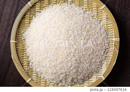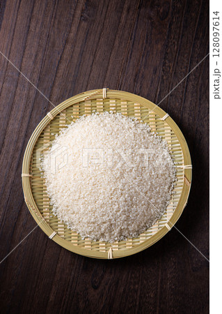 竹ざるに入ったお米