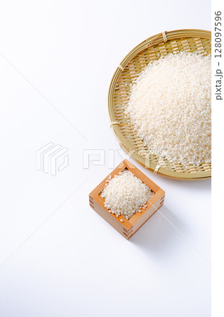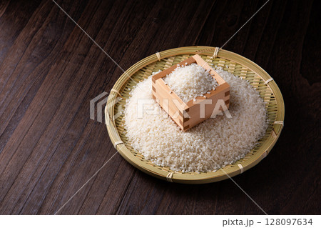 ザルと枡に入れたお米