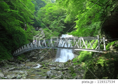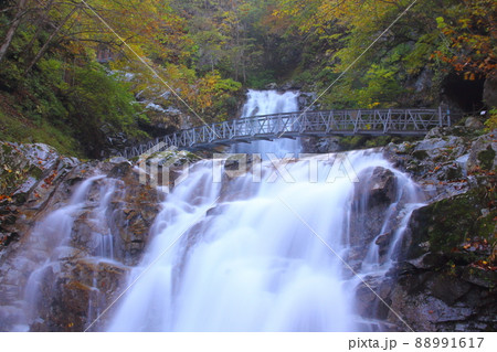 山梨県・秋の石空(いしうとろ)川渓谷の精進ケ滝橋
