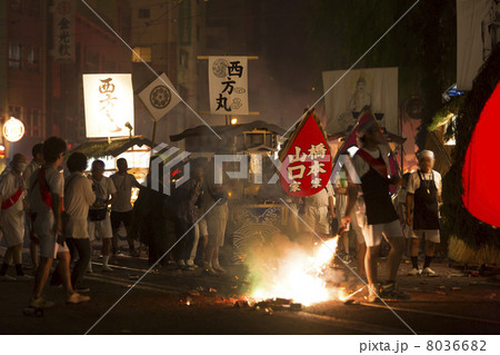京都府 宮津市 宮津燈籠流しの精霊船 紅白の追っかけ灯籠