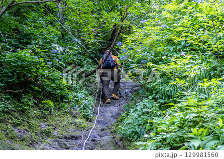 【日本百名山】大山ユートピアコース ヤマアジサイの花咲く鎖場1 鳥取県西伯郡大山町