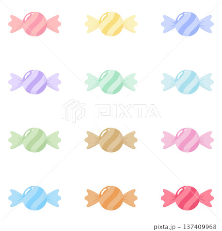 Colorful Sweet Candy Wrapped in Pastel Plastic Vector Set
