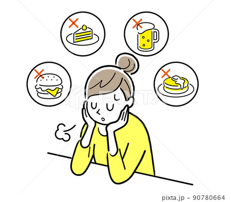 ベクターイラスト素材:ダイエット中、食事を我慢する女性
