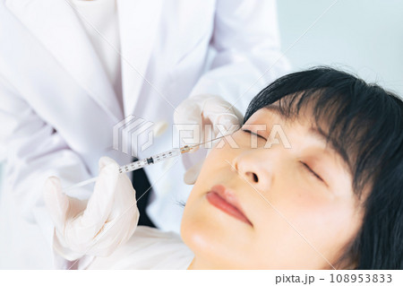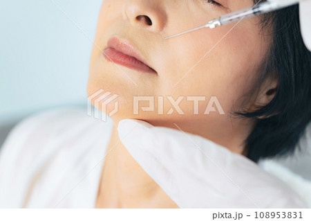 顔に注射を受ける女性 美容整形 ヒアルロン酸 ボトックス注射