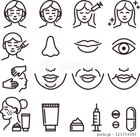 美容医療 美容整形 人物 女性 ラインアイコン 線 シンプル イラスト素材セット