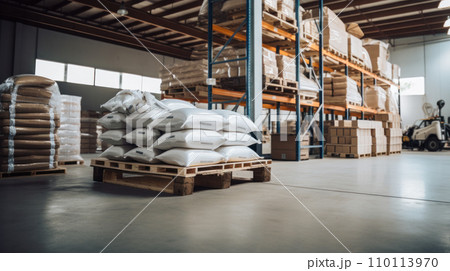 AI-generated content. row of raw cement bag stack on construction warehouse ideas concept.