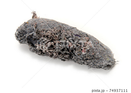 Dust, Fluff, Remnant of clothes on laundry after removing from clothing dryer on white background, Laundry machine cleaning concept, Close up and macro shot