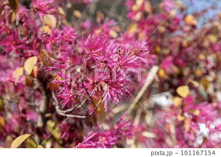 トキワマンサク(ベニバナトキワマンサク)のピンクの花
