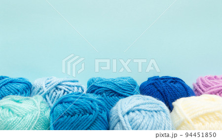 寒色系の毛糸玉 アクリル100%の毛糸 ブルー系 余白